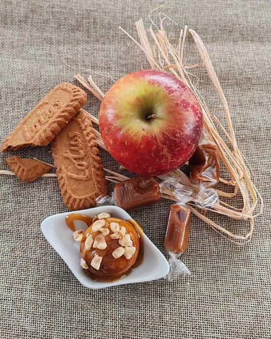Cacahuètes / caramel + nappage caramel + éclats de cacahuètes